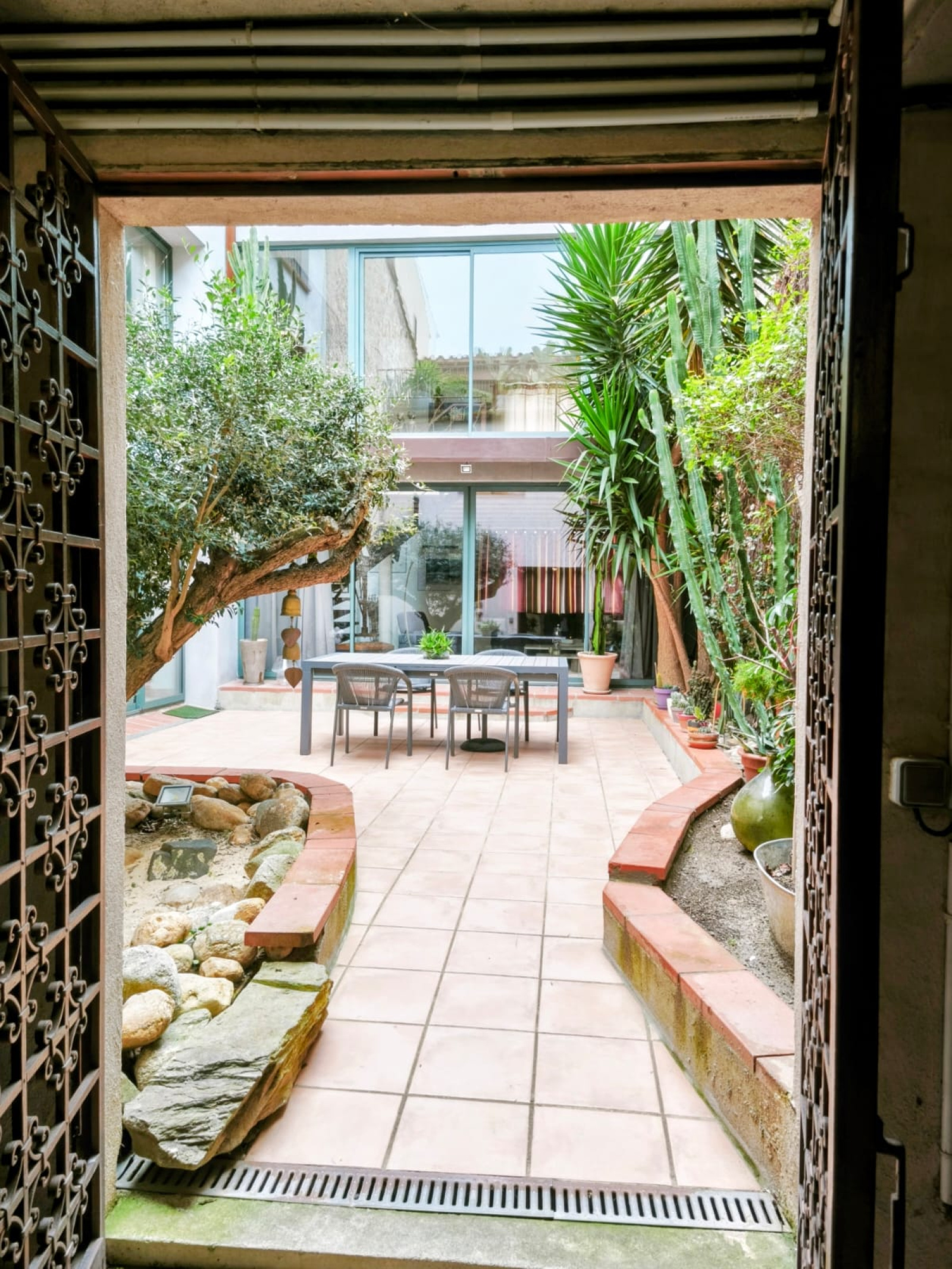 Atouts : patio sans vis à vis, maison traversante sur 3 faces, grand garage, rénovation de qualité, emplacement central et calme.