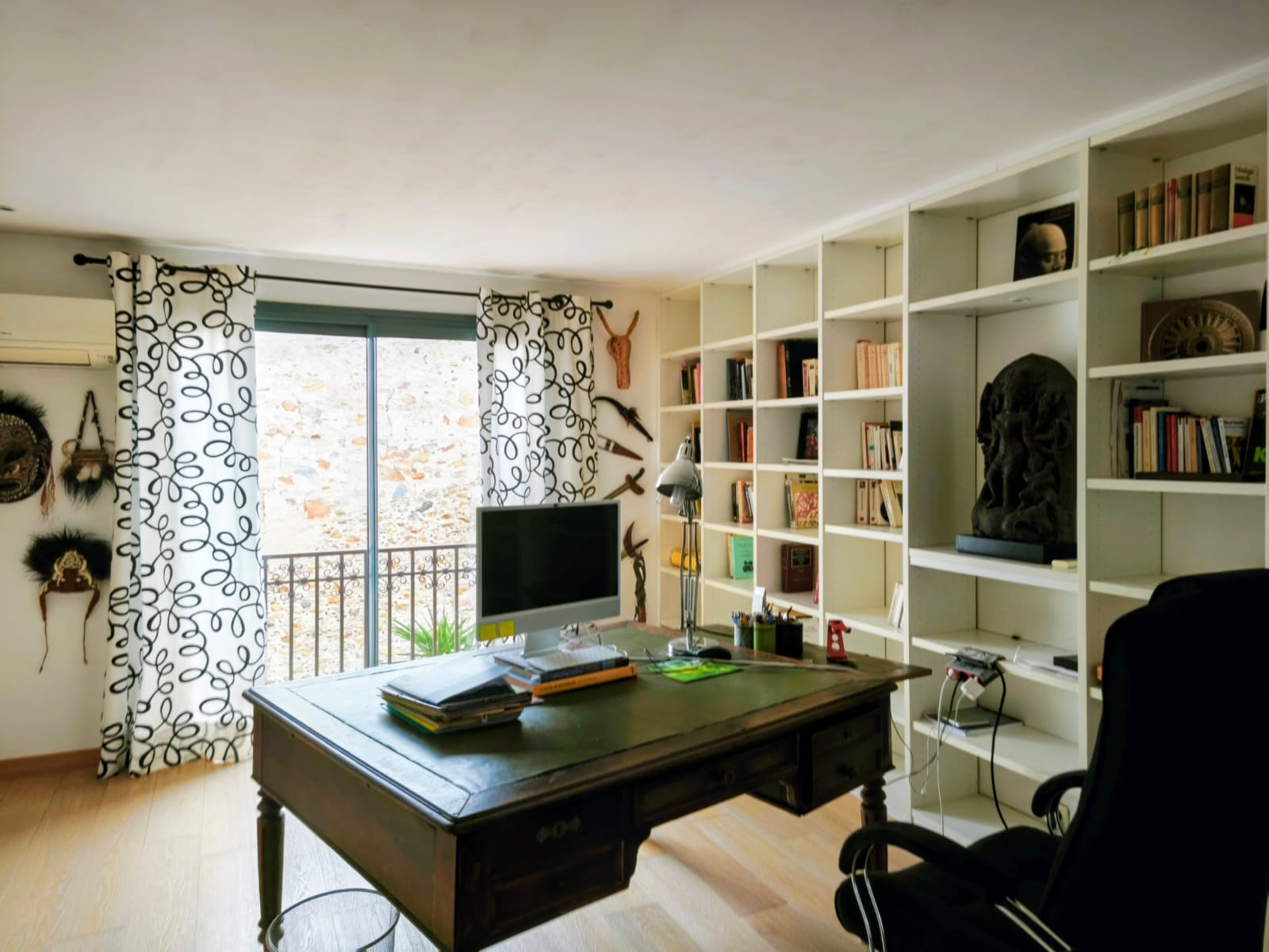 Un élégant escalier réalisé sur mesure mène à un bureau en mezzanine baigné de lumière avec vue sur le patio, une suite parentale avec dressing et salle de bains avec béton ciré (baignoire et douche à l’italienne) ainsi qu’une deuxième chambre. En suivant vous trouverez au dernier niveau deux chambres supplémentaires, dont une actuellement aménagée en bureau-bibliothèque, ainsi qu’une salle d’eau avec wc.